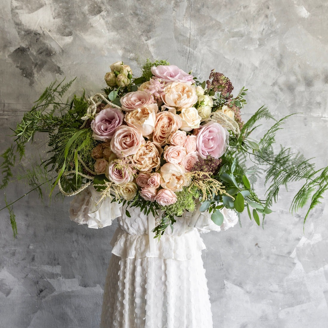 Čajová ruža, trsová ruža, astilbe, eukalyptus, doplnková zeleň, lúčna zeleň, doplnky.